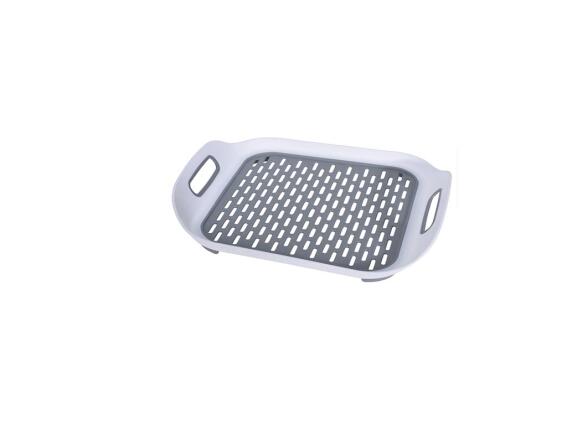 Δίσκος αποστράγγιξης νεροχύτη πλαστική επιφάνεια στεγνωτήριο πιάτων, 36x31x5 cm Ιδανικό για πλύσιμο φρούτων και λαχανικών ή για στέγνωμα πιάτων. Το κομψό φινίρισμα και τα λευκά και γκρι χρώματα θα ταιριάζουν απόλυτα σε κλασικούς και μοντέρνους εσωτερικούς χώρους. Οι άνετες και μεγάλες λαβές θα σας βοηθήσουν να μεταφέρετε και να αφαιρέσετε εύκολα το χαλάκι από το νεροχύτη. Κατασκευασμένο με ιδιαίτερη προσοχή σε κάθε λεπτομέρεια ποιότητας και αντοχής. Το χαλάκι προστατεύει τέλεια τον νεροχύτη από γρατσουνιές Χαρακτηριστικά: Διαστάσεις: 36x31x5 cm Υλικό: Πλαστικό Ιδανικό για νεροχύτη