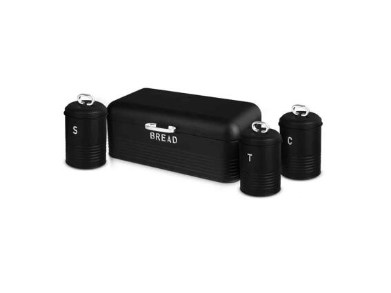 Berlinger Haus Σετ Ψωμιέρα με Δοχεία Καφέ, Ζάχαρης και Τσάι 4 τμχ Ανοξείδωτα, Black Silver BH-6754 2