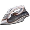 Διαθέτει κεραμική πλάκα με 42 οπές εξόδου ατμού και όμορφο εργονομικό σχεδιασμό σε χρώμα άσπρο με χρυσή λεπτομέρεια.