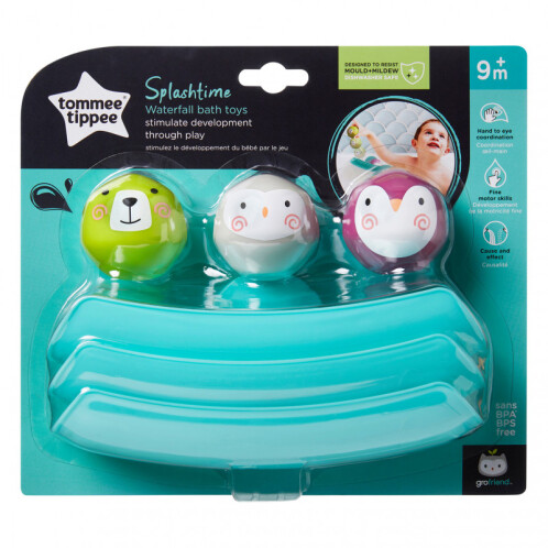 Παιχνίδι Μπάνιου της Tommee Tippee Splashtime Waterfall περιέχει 3 διαφορετικές φιγούρες και 3 τσουλήθρες ώστε να φτιάξει το παιδάκι τη δική του κατασκευή. Οι τσουλήθρες διαθέτουν βεντούζες ώστε να κολλάνε στον τοίχο του μπάνιου. Βοηθούν τα παιδιά να αναπτύξουν τις δεξιότητες τους μέσα από το παιχνίδι και να μάθουν να συντονίζουν την κίνηση με τα οπτικά ερεθίσματα. Οι φιγούρες είναι κατασκευασμένες από ειδικό υλικό σχεδιασμένο να αντιστέκεται στη μούχλα. Χαρακτηριστικά Splashtime - Waterfall Παιχνίδι μπάνιου με 3 φιγούρες και 3 νεροτσουλήθρες με βεντούζες Κατάλληλο για ηλικίες από: 9+ μηνών