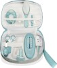 Ολοκληρωμένο κιτ βρεφικής φροντίδας με 9 αξεσουάρ 9 αξεσουάρ καθημερινής βρεφικής φροντίδας Θήκη με φερμουάρ φιλική προς το ταξίδι σε μπλε/γκρι ή ροδακινί/γκρι Ψηφιακό θερμόμετρο Βρεφικός ρινικός αναρροφητήρας 1 ψαλίδι 1 ζευγάρι νυχοκόπτη μωρού 1 λίμα νυχιών Ένα θερμόμετρο μπάνιου Μαλακή βούρτσα μαλλιών 1 δακτύλιος οδοντοφυΐας 1 μασάζ ούλων