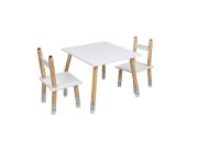 Ξύλινο Σετ Τραπεζάκι με 2 Καρέκλες για παιδιά με πόδια σε μορφή Μολυβιού, 55x42x34 cm Wooden Set Table and two chairs Οι μικροί μας φίλοι θα ενθουσιαστούν με αυτό το σετ που αποτελείται από ξύλινο τραπεζάκι και δύο ξύλινες καρέκλες, όπου δίνουν το σχήμα ενός μολυβιού. Κατασκευασμένο από ξύλο MDF και πεύκου είναι απόλυτα σταθερό και ανθεκτικό στην καθημερινή χρήση θα είναι μία όμορφη προσθήκη στο δωμάτιό των παιδιών σας. Μπορούν να καθήσουν να ζωγραφίσουν, να διαβάσουν ή και να παίξουν. Επίσης, είναι ιδανικό για το νηπιαγωγείο ή το Playroom. Χαρακτηριστικά προϊόντος: Υλικό: Ξύλο MDF, Πεύκο Χρώμα: Λευκό, Φυσικό ξύλου Καθαρίζεται εύκολα Οικολογικά χρώματα - Κατάλληλα και ασφαλή για παιδιά Διαστάσεις Τραπεζιού: 55x55x42.8 cm Διαστάσεις Καρέκλας: 28x30.3x51.5 cm Ύψος καθίσματος: 23 cm