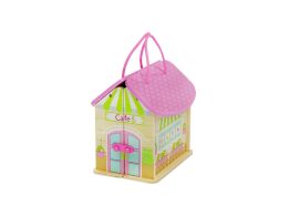 Ξύλινο Κουκλόσπιτο με ξύλινα αξεσουάρ, έπιπλα και λαβή μεταφοράς, 19x16x25.5cm