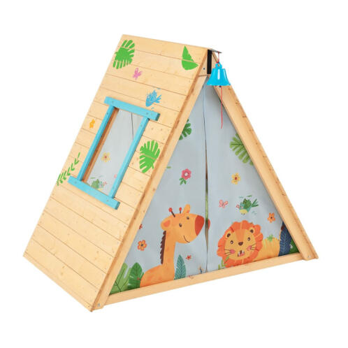 Costway Παιδική Ξύλινη Τριγωνική Σκηνή με Τοίχο Αναρρίχησης 115 x 77 x 100 cm Costway TS10054 1