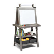 Costway Ξύλινος Παιδικός Μαυροπίνακας / Πίνακας 3 σε 1 Διπλής Όψης Χρώματος Γκρι Costway TY327442HS
