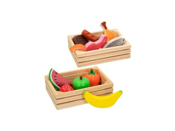 Σετ ξύλινα παιδικά καφάσια με φρούτα και κρεατικά, 13 τεμ., 25.5x5x17 cm