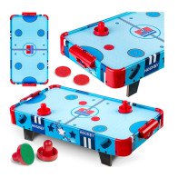 Ξύλινο επιδαπέδιο τραπέζι χόκει αέρος, πτυσσόμενο σε μπλε χρώμα, 152x74x80 cm, Air hockey