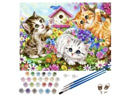 Ζωγραφική με Νερομπογιές σε Αριθμημένες Περιοχές Σχέδιο Καθιστής Γάτας σε Ξύλινη Κορνίζα, 40x50 cm