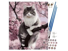 Ζωγραφική με Νερομπογιές σε Αριθμημένες Περιοχές Σχέδιο Καθιστής Γάτας σε Ξύλινη Κορνίζα, 40x50 cm