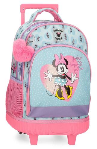 Η Minnie δίνει απίστευτη χαρά σε όλα τα μικρά κορίτσια, ειδικά όταν έρχεται μαζί με μία ροζ καρδιά όπως στη σειρά My Happy Place! Χάρη στις δύο διπλές του ρόδες, αλλά και τους εργονομικούς ιμάντες πλάτης που διαθέτει, αυτό το σακίδιο πηγαίνει εύκολα παντού μαζί με το παιδί. Τα δύο ευρύχωρα διαμερίσματά του είναι ιδανικά για να οργανωθούν βιβλία, ενω διαθέτει και μπροστινό τσεπάκι για μικρά αξεσουάρ.