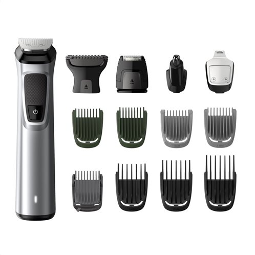 Το τρίμερ "όλα σε ένα" Philips Multigroom 7000 συνοδεύεται από 14 εξαρτήματα, προσφέροντας μια ολοκληρωμένη λύση περιποίησης σώματος.