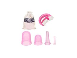 Σετ Βεντούζες Σιλικόνης 5 τμχ με Roller για Μασάζ Προσώπου και Σώματος κατά της Κυτταρίτιδας, σε Θήκη Ροζ