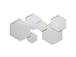Μεταλλικό διακοσμητικό σετ καθρέφτες 6 τεμάχια σε πολύγωνο σχήμα σε Χρυσό χρώμα, 57x1x35 cm