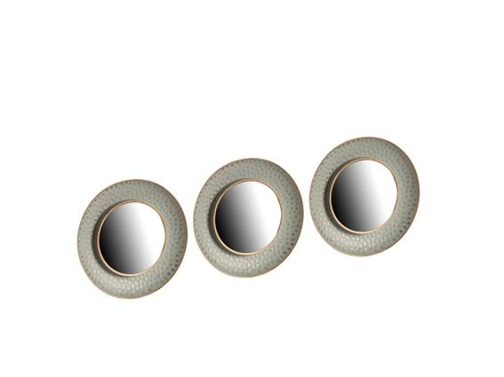 Σετ στρογγυλοί καθρέφτες 3 τεμαχίων, με ανάγλυφο πλαίσιο σε Γκρι χρυσό χρώμα, 24.5x24.5x2 cm