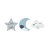 Οι παιδικές κρεμάστρες, από την εταιρία Atmosphera, είναι κατασκευασμένες από MDF κατηγορίας E1, σε σχέδια αστέρι, φεγγάρι και σύννεφο. Χαρακτηριστικά: Από MDF κατηγορίας E1 Σχέδια: αστέρι, φεγγάρι και σύννεφο Διαστάσεις (σύννεφο): 12 x 4 x 8.5 cm Διαστάσεις (φεγγάρι): 9.2 x 4 x 11.5 cm Διαστάσεις (αστέρι): 10 x 4 x 11 cm Σετ 3 τμχ. Το προϊόν εισάγεται και διατίθεται από την SPM Network.