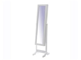 Ξύλινος Ολόσωμος Καθρέπτης Δαπέδου Μπιζουτιέρα σε λευκό χρώμα, 37x35x145 cm