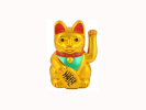 Τυχερή γάτα για Feng shui - Αφθονία και πλούτη Η τυχερή γάτα θα σας φέρει γούρι και θα δώσει μια νέα αισθητική στον χώρο σας ! H γάτα που κουνάει το χέρι της. Διαστάσεις: Λειτουργεί με μπαταρίες. Η ιστορία Σύμφωνα με την κινεζική μυθολογία, οι γάτες ήταν σύμβολα της προστασίας ενάντια στο κακό. Λόγω της καλής τους όρασης στο σκοτάδι, μπορούσαν να δουν τα κακά πνεύματα και να τα διώξουν πριν κάνουν κακό. Η χρυσή γάτα είναι αγαλματίδιο που στο φενγκ σούι συμβολίζει την καλοτυχία, την αφθονία και την προστασία. Η χαμογελαστή γάτα με το υπερυψωμένο πόδι προσελκύει πλούτο, καλή τύχη, ευημερία και καλωσορίζει στο χώρο σας φίλους ή νέα πελατεία (αν πρόκειται για χώρο εργασίας). Τοποθετήστε την έτσι ώστε να βλέπει την είσοδο του γραφείου ή του σπιτιού σας για να καλωσορίζει τους επισκέπτες στο σπίτι ή στη δουλειά καθώς και τις νέες ευκαιρίες. Το υψωμένο πόδι κινείται διαρκώς ώστε να μπορούν να το αγγίξουν οι επισκέπτες, το άλλο ακουμπά σε πλάκα με τυχερές ευχές. Λειτουργεί με μία μπαταρία ΑΑ (δεν περιλαμβάνεται).
