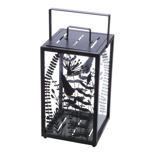 Φανάρι με διακόσμηση λουλούδια μαύρο μέταλλο/γυαλί 25x25x48cm.