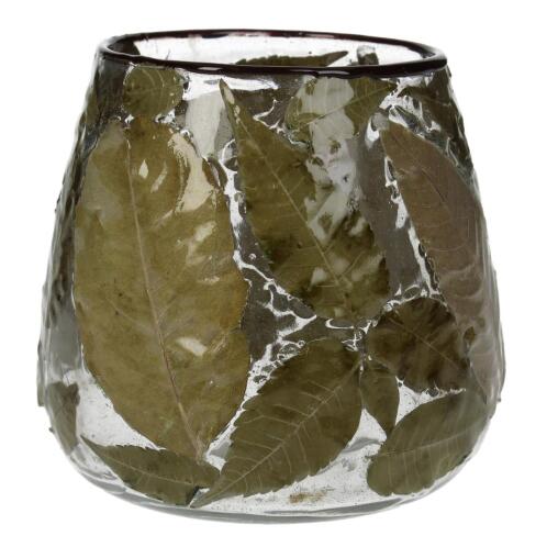 Κηροπήγιο φύλλα τσαγιού διάφανο γυαλί 10x10x10cm.