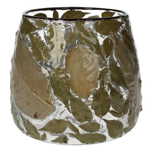 Κηροπήγιο φύλλα τσαγιού διάφανο γυαλί 15x15x15cm.