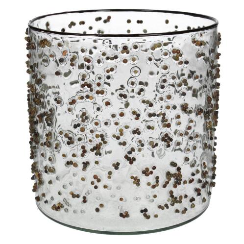 Κηροπήγιο φύλλα τσαγιού καφέ γυαλί 15x15x15cm.