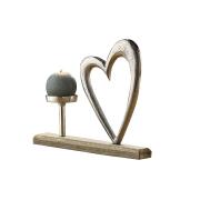 Κηροπήγιο καρδιά σε βάση ασημί αλουμίνιο/ξύλο 5x33x28cm.