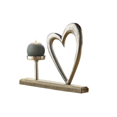 ARTELIBRE Κηροπήγιο Καρδιά Σε Βάση Ασημί Αλουμίνιο/Ξύλο 5x33x28cm