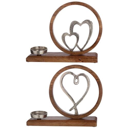 ARTELIBRE Θήκη Ρεσώ Με Καρδιές Σε Βάση Ασημί/Καφέ Αλουμίνιο/Ξύλο 8x36x26cm Σε 2 Σχέδια 1