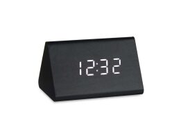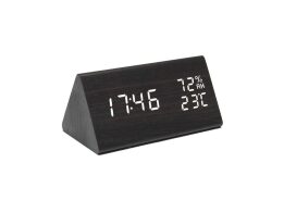 Ξύλινο ψηφιακό ρολόι επιτραπέζιο με ξυπνητήρι σε μαύρο χρώμα, 8x11.7x7.5 cm