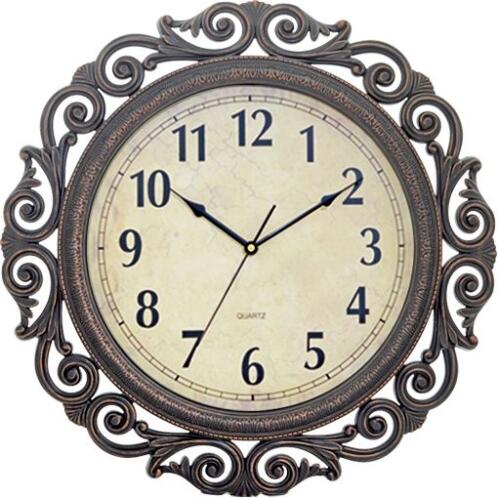 Ρολόι τοίχου στρογγυλό σε κλασικό διαχρονικό στυλ με περίτεχνο σχέδιο περιμετρικά.