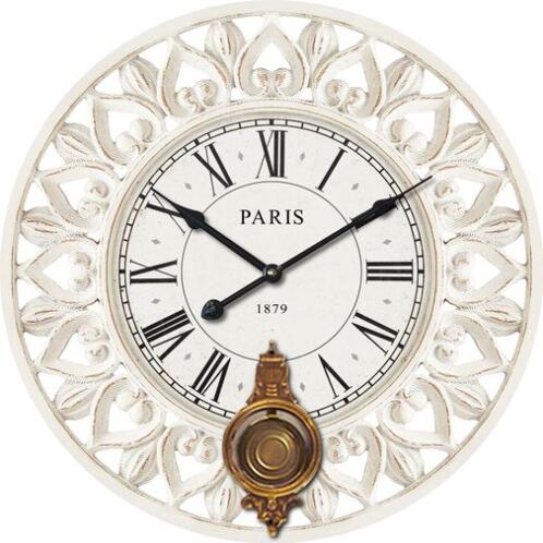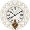 Ρολόι τοίχου στρογγυλό από MDF με περίτεχνο περιμετρικό σχέδιο σε λευκή απόχρωση.