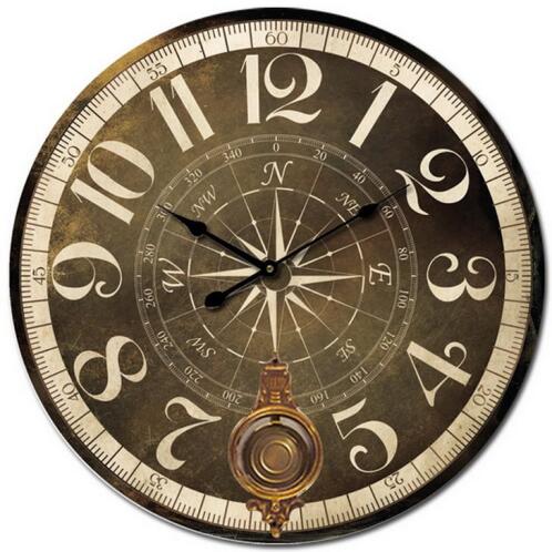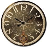Ρολόι τοίχου στρογγυλό από MDF με φόντο πυξίδα στο κέντρο του.