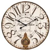 Ρολόι τοίχου στρογγυλό από MDF σε κλασικό σχέδιο με γηίνες αποχρώσεις και μεγάλα νούμερα.