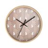 Ρολόι τοίχου στρογγυλό από μέταλλο και ξύλο με πρωτότυπο πάτερν για φόντο και μαύρους δείκτες.