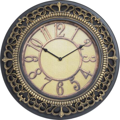 Ρολόι τοίχου στρογγυλό σε κλασικό διαχρονικό στυλ με περίτεχνο σχέδιο περιμετρικά.