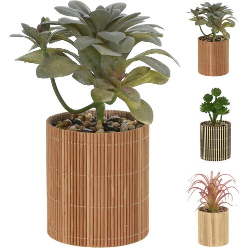 Φυτό τεχνητό σε μπαμπού/PP γλαστράκι 8x8x19cm σε 3 συνδυασμούς. Τυχαία επιλογή σχεδίου.