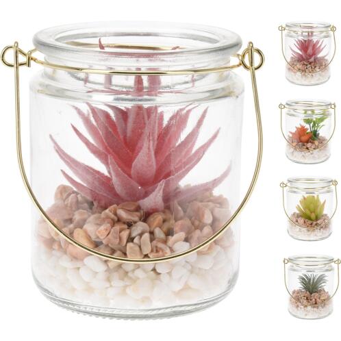 ArteLibre Φυτό Τεχνητό Σε Γυάλινο Δοχείο Με Χρυσό Χερούλι 80x80x100mm Σε 4 Χρώματα
