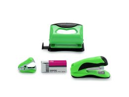 Σετ γραφείου 3 τεμαχίων με αξεσουάρ γραφείου, συρραπτικό, περφορατέρ και αποσυρραπτικό σε 3 χρώματα Πράσινο
