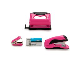 Σετ γραφείου 3 τεμαχίων με αξεσουάρ γραφείου, συρραπτικό, περφορατέρ και αποσυρραπτικό Ροζ