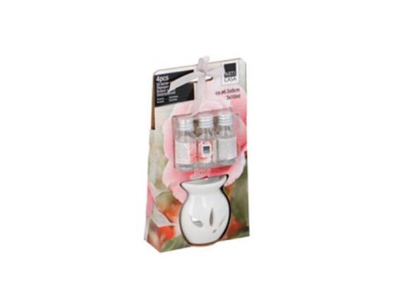Αρωματικό χώρου με 3 αιθέρια έλαια των 10ml Arti Casa 07020 Αρωματείστε τον χώρο σας εύκολα και γρήγορα με τα πιο ανάλαφρα και χαλαρωτικά αρωματικά χώρου, σε 8 διαφορετικές μυρωδιές. Πρόκειται για ένα βάζο καύσης αρωματικών ελαίων, το οποίο φέρει 3 αρωματικά αιθέρια έλαια των 10ml, σε διαφορετικές μυρωδιές για να επιλέξετε εκείνη που σας κάνει να χαλαρώνετε, να ηρεμείτε και να απολαμβάνεται την ημέρα σας. Ανάψτε τα αιθέρια έλαια όταν έχετε γυρίσει από την δουλειά ή στο τέλος μιας πολύ δύσκολης ημέρας, ή ακόμα όταν θέλετε να προσδώσετε μια πιο ανάλαφρη μυρωδιά στον χώρο και θέλετε να καλύψετε μια επίμονη μυρωδιά. Όμορφα, πρακτικά, ιδανικά για κάθε μέρα και σε ευκαιριακή τιμή, μπορούν να δωθούν ακόμη και ως δώρο σε έναν φίλο/φίλη ή κάποιον που έχει ανάγκη από χαλάρωση. Διαστάσεις: Μήκος: 12 εκατοστά Πλάτος: 6,5 εκατοστά Ύψος: 21 εκατοστά Χαρακτηριστικά: Υλικό: Κεραμικό Σετ δώρου 3x10ml αιθέρια έλαια Διατίθενται 8 διαφορετικές μυρωδιές Με την εγγύηση και την ποιότητα