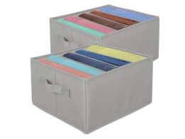 Σετ Πτυσσόμενα Υφασμάτινα Κουτιά Αποθήκευσης 2 τμχ με Διαχωριστικά 17x27x33 cm, σε Γκρι χρώμα