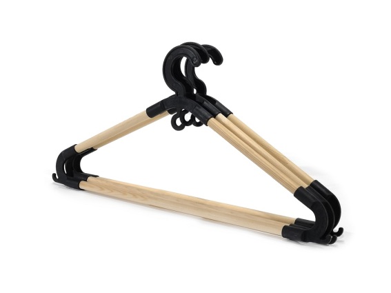 Κρεμάστρα ρούχων φυσικό/μαύρο ξύλο/πλαστικό 42x21cm σετ 3τμχ.