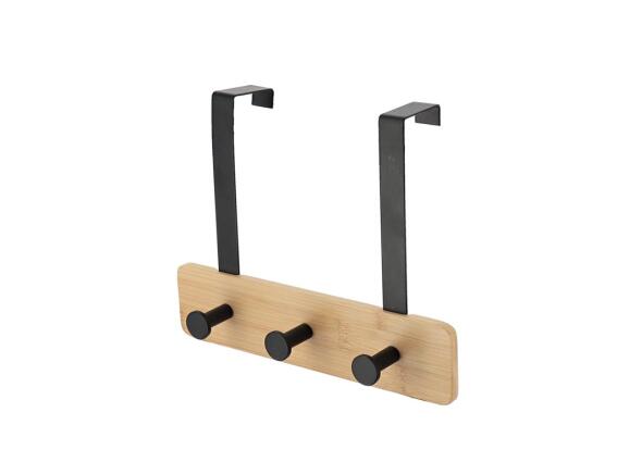 Κρεμάστρα πόρτας με δύο γάντζους στερέωσης και τρείς θέσεις σε μπαμπού και μαύρο μέταλλο.