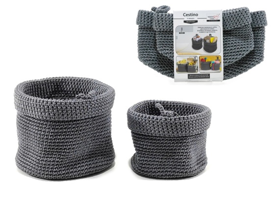 ArteLibre Καλάθι Πλεκτό Φ15x12cm/Φ20x14cm Σετ 2Τμχ Γκρι. Καλάθι γκρι πλεκτό Φ15x12cm/Φ20x14cm σετ 2τμχ.