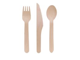 Eco Σετ Ξύλινα Οικολογικά Κουταλομαχαιροπίρουνα μιας Χρήσης 24 τεμαχίων, Μήκους 16 cm