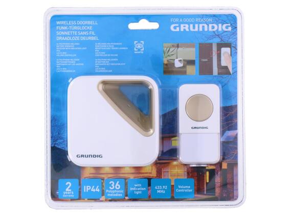 Grundig Ασύρματο Κουδούνι Πόρτας με Δέκτη εσωτερικού χώρου, Μπουτόν και 36 μελωδίες, 06965