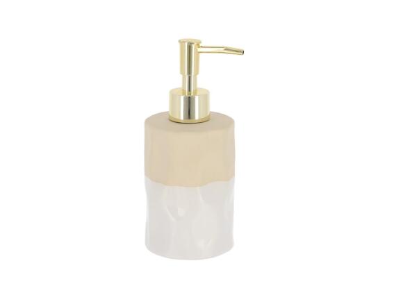 Διανεμητής σαπουνιού dispenser, δίχρωμο κεραμικό δοχείο για κρεμοσάπουνο με αντλία, 17.5x17.5x7.5 cm Κατασκευασμένο από κεραμικό υλικό υψηλής ποιότητας και αντοχής το εν λόγω δοχείο για κρεμοσάπουνο αποτελεί μια εκλεπτυσμένη επιλογή για το μπάνιο σας. Πρόκειται για ένα φίνο και εξαιρετικό αξεσουάρ μπάνιου, κατασκευασμένο από υψηλής ποιότητας υλικά σε διαχρονικά και κομψά χρώματα. Είναι κατάλληλο για τοποθέτηση στο μπάνιο σας, με την επιλογή του χρώματος που θα κάνετε θα δώσετε στον χώρο σας την απαραίτητη κομψότητα που θέλετε να έχει. Κάντε το τώρα δικό σας και τοποθετήστε το κοντά στον νιπτήρα του μπάνιου σας. Deco tips: Μπορείτε να το συνδυάσετε με ίδια θήκη για σαπούνι και ίδιο πιγκάλ. Χαρακτηριστικά : Υλικό: Αμμόπετρα-Κεραμικό Χρώμα: Λευκό /Μπεζ Σχέδιο: Δίχρωμο Χωρητικότητα: 310ml Ανθεκτική κατασκευή
