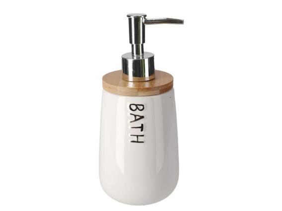 Κεραμικός Διανεμητής Σαπουνιού Dispenser Χωρητικότητας 400 ml με Καπάκι Bamboo, σε Λευκό χρώμα