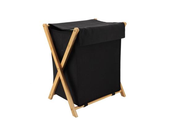 Καλάθι Απλύτων, πτυσσόμενο, με ξύλινη βάση, σε μαύρο χρώμα, χωρητικοτητας 54 ltr, 35x46x35 cm