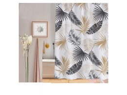 Πλαστική κουρτίνα μπάνιου με σχέδιο τροπικά φύλλα, σε λευκό χρώμα με 12 κρίκους, 180x200 cm